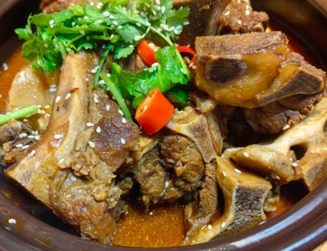 熬一鍋厚切牛骨頭筋肉軟爛綿香,骨髓煮化入湯,只剩這一塊牛骨,毅然向上,倔強非常。與油亮的湯汁混合在一起,為自身增加優(yōu)勢的同時,也為其他的菜品增色天香。一骨多用,濃郁健康。牛骨火鍋的精髓就在于,先喝湯,后啃骨,然后再來上一盤牛大肚,包你酣暢淋漓,神清氣爽,愁事全忘光!