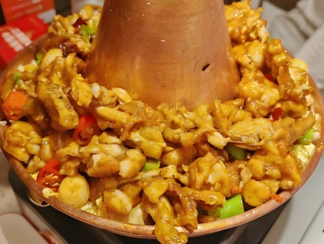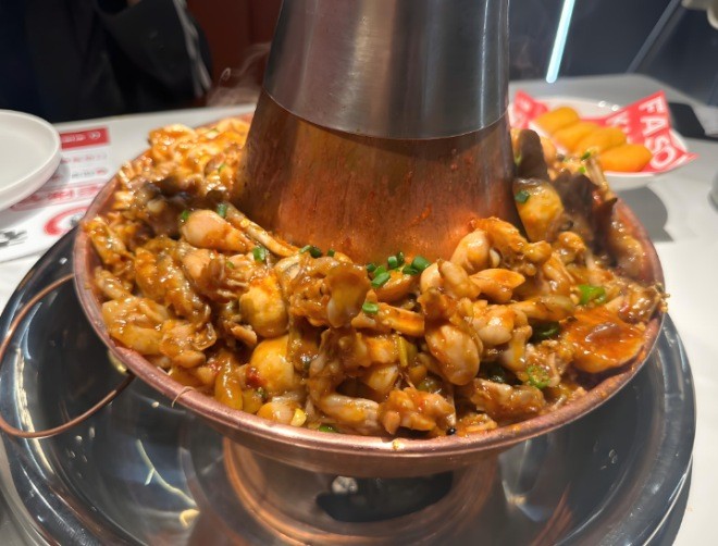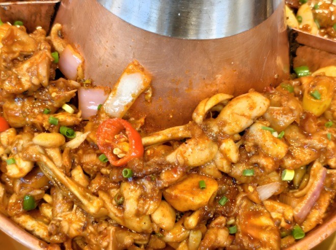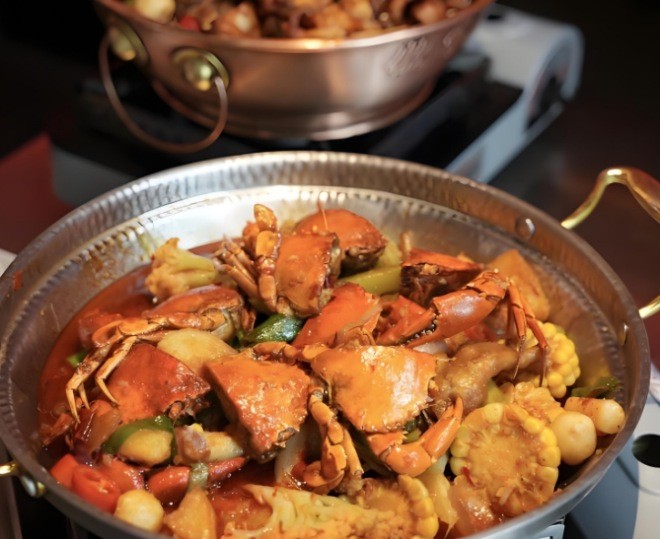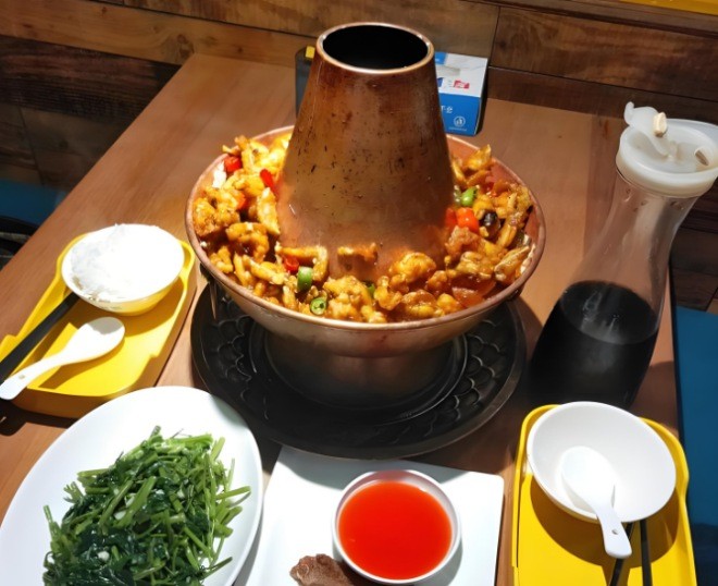 傲掌門銅爐蛙鍋肉蟹煲的招牌銅爐蛙鍋一上桌,蛙肉飽滿鮮嫩,每一口都能感受到肉質的緊實與滑嫩,辣度適中,即使是不太能吃辣的朋友也能輕松駕馭。