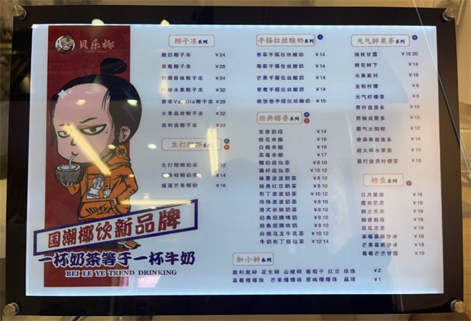 時尚元素:隨處可見的時尚元素,細到店面的一張海報,都會讓年輕人賞心悅目,貝勒椰奶茶用細節感動消費者。