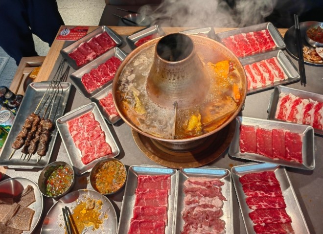 性價比爆棚的丑爺老北京銅鍋涮肉,鮮切牛羊肉,超多安格斯牛涮肉品類暢吃。更有有M級和牛壕奢不限量。羊后腿肉連肥帶瘦,看著就食欲滿滿。清湯鍋就足夠,膻味淡,羊味厚,瘦肉細嫩,邊上帶著羊油香,微微脆。蘸點特制羊肉蘸料,香瘋了。吃肉再就口糖蒜,地道的很。鮮切牛肉,份量十足,幾乎不帶一點肥,一把全下鍋,別心急,默數10秒撈出鍋。夾出鍋那就是一筷子的撲鼻香,甜香的肉汁,嫩極了,大口吃肉,就是過癮。