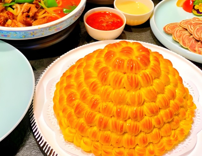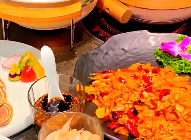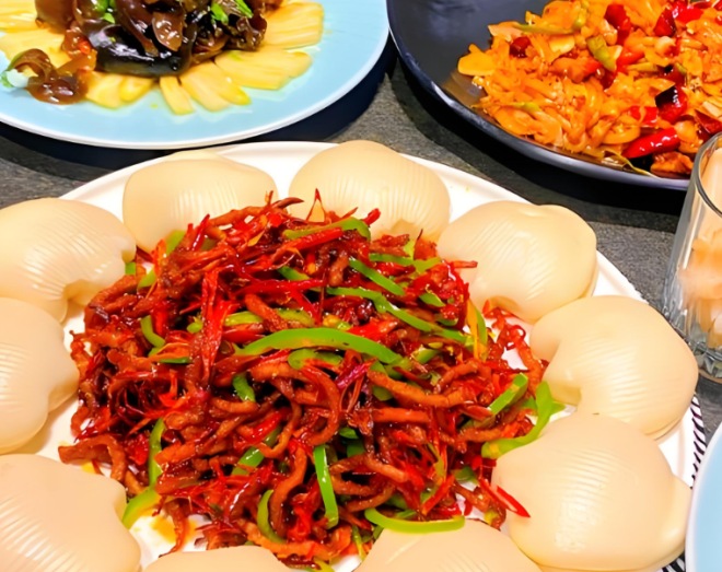 德隆樓西北菜自制八寶茶口感醇厚俘獲人心,里面配以各種珍貴的枸杞,沙棗,芝麻等,點睛之筆就是那塊糖了這是由玫瑰醬加上綿砂糖特質而成,如此八寶混合,沖泡出來茶香四溢,回味無窮!特色單品敖包相會外面是鍋巴,汁水是濃稠甜口的,敲開鍋巴,里邊是油炸的茄子夾肉的那種茄盒,里邊還有肉筋,肉質緊實還多汁。酥骨魚、炒肉片、干椒牛肉絲等西北菜,分量足又美味,絕對讓你吃得滿足!