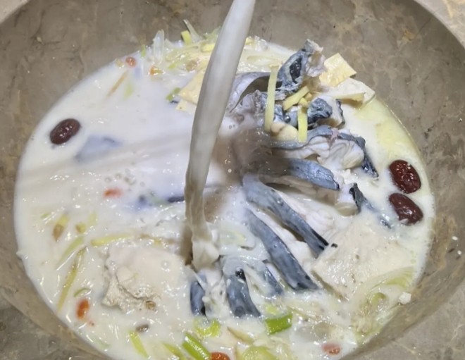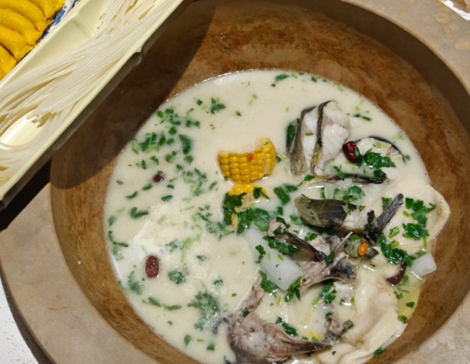 湯汁濃郁:經過高溫蒸汽燉煮,魚皮和魚骨中的膠原蛋白充分融入湯中,使湯汁呈現出奶白色,質地濃稠,猶如牛乳般醇厚,鮮味濃郁,喝起來溫暖滋補,回味悠長。
