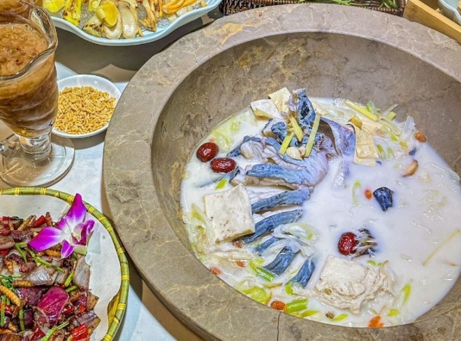 滇弍123°云南原生態石鍋魚烹制過程都在餐桌呈現,不但觀賞性十足,更可展現原料的新鮮與衛生,蒸汽方式更可最大化的保存食材營養,讓消費者吃的安全、吃的放心。