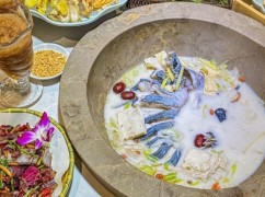 滇弍123°云南原生態石鍋魚先喝湯,湯鮮味美;再吃肉,肉嫩爽滑;最后涮菜,鮮香可口。鍋底不放油,不放味精,不添加大料,礦泉水配料再加上云南秘制調料,讓人們吃的更營養,更健康。在滇弍123°就餐,可以邊吃邊聽服務員講解每道云南菜的文化底蘊,讓就餐更愉悅,是朋友聚餐或商務宴請的好去處。