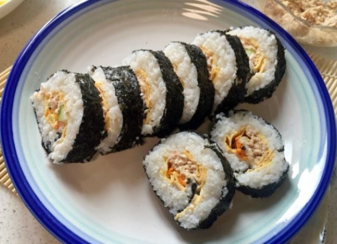 恩熙家紫菜包飯店內(nèi)的金槍魚(yú)紫菜包飯味道鮮美的不像話,一點(diǎn)腥氣也沒(méi)有!就算是平時(shí)不愛(ài)吃海鮮的小伙伴,一瞬間,也是一盒見(jiàn)底,而且金槍魚(yú)肉多的讓人驚喜~每一口都是滿滿的肉欲!芝士紫菜包飯里面夾著胡蘿卜、牛蒡、雞蛋清、雞蛋黃、魚(yú)餅、香腸、甜蘿卜、黃瓜、沙拉醬、芝士。外面是脆脆的紫菜,一口下去有濃濃的芝士香味,搭配起來(lái)味道超級(jí)耐斯,是芝士重度患者的不二選擇呀!