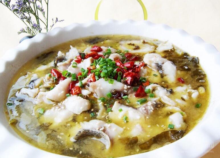 酸菜魚屬四川菜系,以其特有的調(diào)味和獨一無二的烹調(diào)技法而著稱。以鮮草魚為主料,配以四川泡菜煮制而成。此菜雖為四川民間家常菜,但流傳甚廣。成菜肉質(zhì)細嫩,湯酸香鮮美,微辣不膩;魚片嫩黃爽滑。