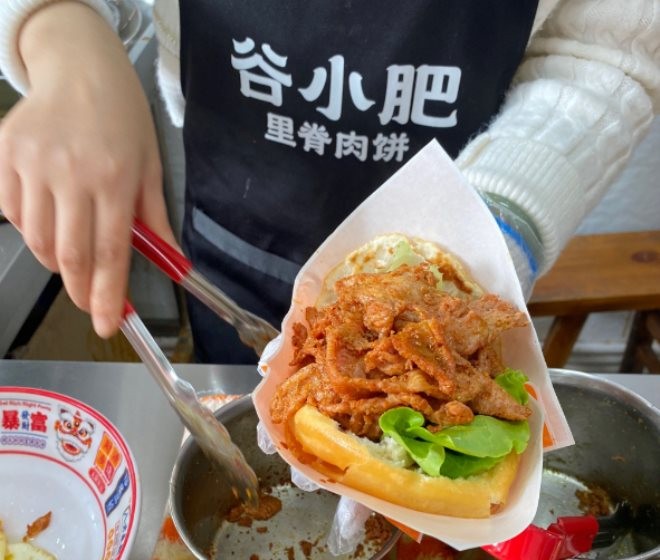 里脊肉餅的起源可追溯至安徽淮北市,最初以“白皮餅夾里脊”的形式出現(xiàn),搭配秘制醬料與孜然調(diào)味,成為當(dāng)?shù)貙W(xué)生的“校園記憶”。隨著人口流動與飲食文化傳播,谷小肥里脊肉餅逐漸走出安徽,在北京、上海、廣州等一線城市扎根,并輻射至新疆、寧夏、東北三省等全國大多數(shù)地區(qū)。尤其在蘇、魯、豫、皖一帶,其“外酥里嫩、醬香濃郁”的特點(diǎn)深受消費(fèi)者喜愛,成為街頭巷尾的熱門小吃。