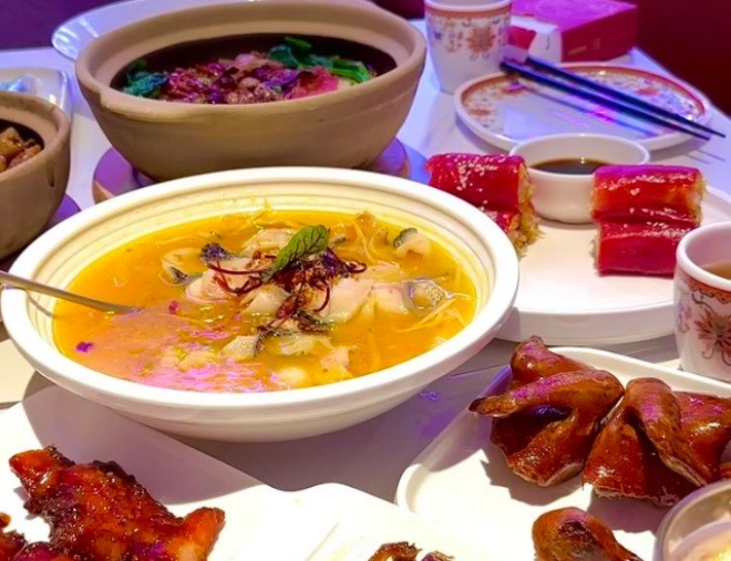 顧小粵的藥膳乳鴿湯底采用五指毛桃、枸杞,清香撲鼻,整個湯底仙氣飄飄。先喝湯再吃鴿。乳鴿在湯底下浸熟,肉質(zhì)緊致彈壓,加上秘制腐乳醬,鮮味十足。綠茶餅也是這里的主打,每桌都會點,新鮮出爐外皮脆,里面軟,芝麻提香,口感一流。紅燒乳鴿,外皮酥脆,肉質(zhì)鮮嫩多汁,每一口都是滿滿的幸福感。鴿子的肉質(zhì)鮮嫩多汁,紅燒的醬汁濃郁,甜咸適中,味道特別好。鴿血炒飯,口感豐富,鴿肉的鮮美和米飯的香軟完美結(jié)合。