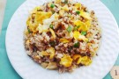 嗨時光鐵板炒飯因粒粒松散、碎金閃爍、鮮美可口而著稱,輔以火腿、蝦仁、雞蛋加上獨特的工藝配料,絕對是快餐飲食中的佳品。品種多樣:有黃金蛋炒飯,火腿炒飯,揚州炒飯,什錦炒飯,臘肉炒飯,香腸炒飯,臘腸炒飯,海鮮炒飯,牛肉炒飯,孜然羊肉炒飯,辣白菜炒飯,雞肉炒飯,培根炒飯等。