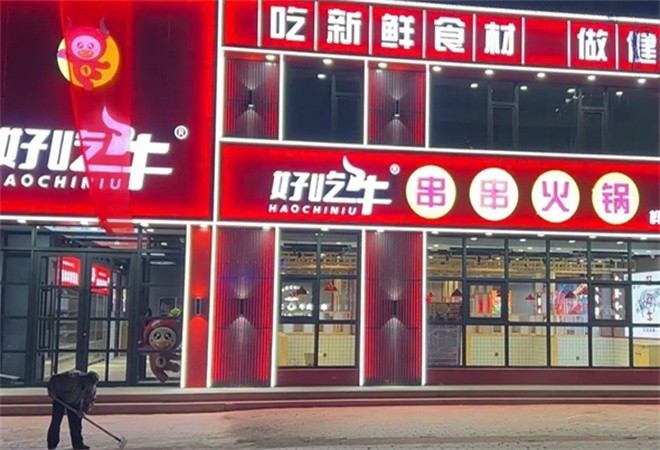 好吃牛串串火鍋總部提供裝修圖紙,要求店鋪必須統一的門面以及統一的風格,代理商配合公司提供物料,一些裝修材料即可。