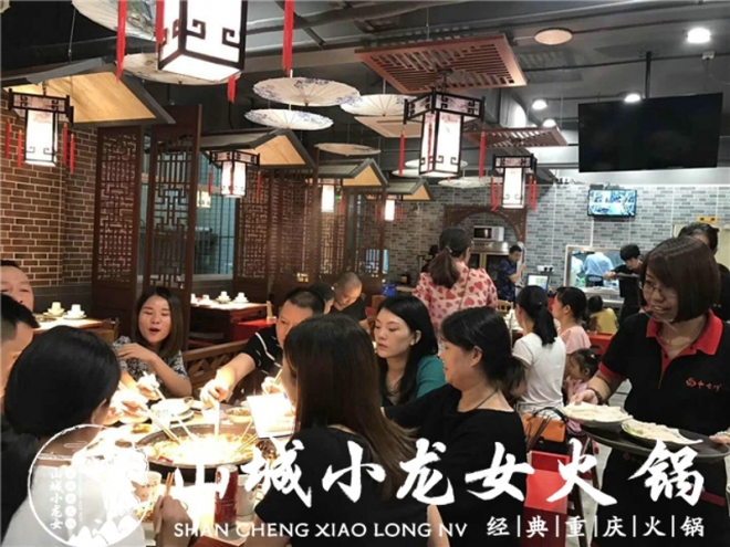 火鍋加盟店設施主要包括后廚全部設備和前廳餐桌、冰箱、調料臺、空調等等。300㎡山城小龍女火鍋加盟店,花費在5萬左右。