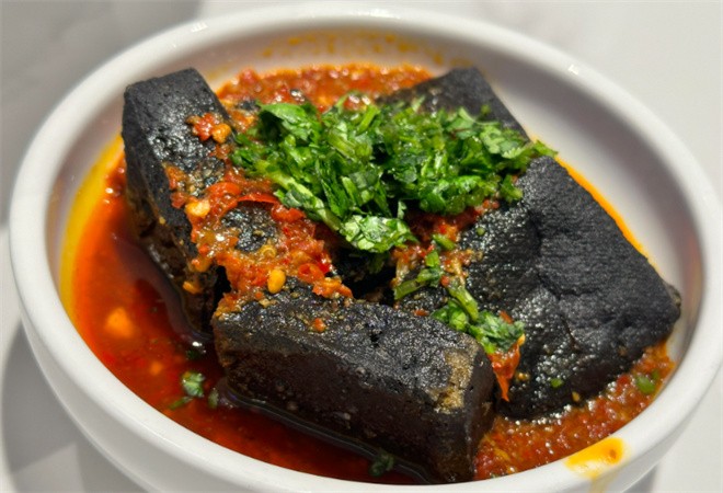 樂臭臭豆腐選用優(yōu)質(zhì)大豆制成豆腐,經(jīng)傳統(tǒng)鹵水或毛霉發(fā)酵,表面形成細密氣孔,內(nèi)部中空酥脆,臭味濃郁但入口轉(zhuǎn)化為鮮香。外層炸至金黃酥脆,內(nèi)里保持嫩滑,搭配泡椒碎、榨菜末、蔥花、香菜等,淋上辣椒油和秘制蒜蓉醬,酸辣開胃。“臭”與“香”的強烈對比,外酥里嫩的質(zhì)地,加上醬料的刺激,形成令人欲罷不能的味覺沖擊。