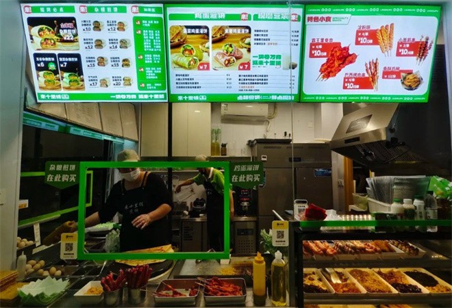 白色的外墻配上原木色的門窗,淡雅樸實的氣息,第一次隨燈光聚焦在煎餅上。走進店內,門窗簡潔透光,大量原木系運用表現出獨特肌理,用清晰的線條道出了幾何立體感。自然色彩的沉靜,牽動人們的情思,回歸自然。從地面到頂面,裝飾都采用了最天然樸實的材料。線條清晰,格局簡潔。仿佛讓煎餅鋪有了這樣一種氣息,不管你從哪兒來,這里都有你的位置。國潮/來十里鋪煎餅操作簡單,從下單到完成,5分鐘內完成綽綽有余,適應現代都市人的生活節奏,深受消費者喜愛。