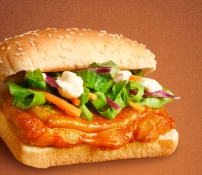 采用面包與雞肉、生菜等調料相搭配,采用特殊原料腌制經高溫烘烤而成,口感微辣、色澤金黃、具有濃烈的美國風味。