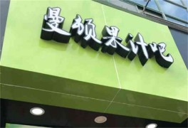 1、品牌形象:曼頓果汁吧有完整的CIS系統,深具特色、領先的時尚店面設計新穎奪目,是一道靚麗的風景線。