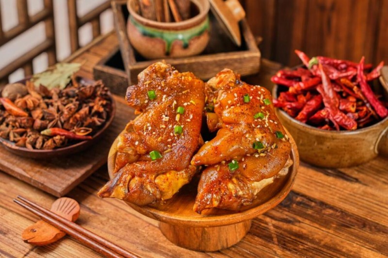 燃蹄公子品牌的鹵烤工藝,融合了傳統鹵制和現代烤制的精髓,注重食材的挑選和處理,以及鹵汁和烤制技術的創新。這種工藝使得豬蹄、雞架、雞爪等招牌美食在口感和風味上都有了極大的提升,讓人回味無窮。