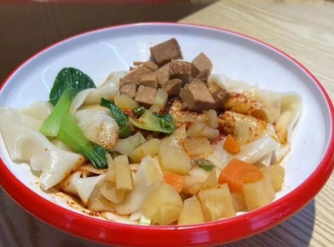 陜福集的手工油潑面口感先是香,然后是微辣,最后是酸爽,這便是它味道層次感的奇妙之處。油潑面上面鋪的一層厚厚的辣椒,澆上熱油,滋啦滋啦響,超級有食欲,越吃越香。