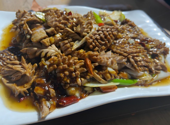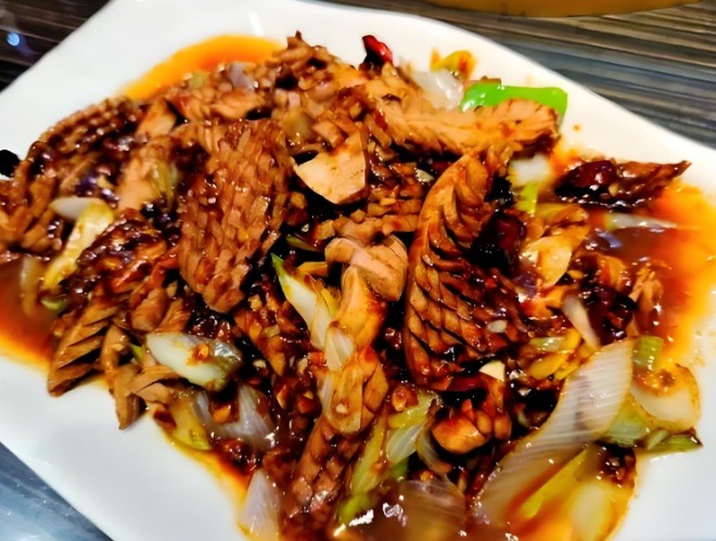 史記炒腰花選用新鮮豬腰,刀工精細(xì),每一片腰花都裹滿醬汁,熱騰騰的拌飯絕配!醬香濃郁,搭配脆木耳超下飯,現(xiàn)點(diǎn)現(xiàn)炒的腰花火候超絕,厚切腰片嫩滑不腥,掛上醬汁一口爆香!