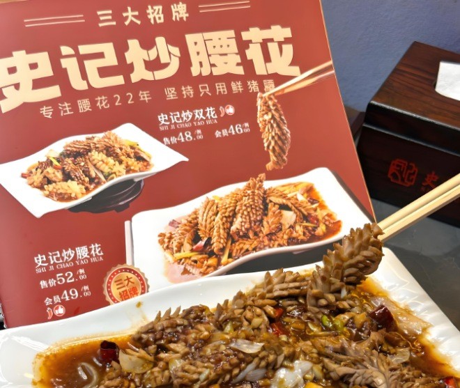 史記以炒腰花聞名,銷量冠絕保定,傳統(tǒng)與現(xiàn)代結(jié)合,味道鮮美。史記炒腰花作為這道菜的代表,以鮮嫩的質(zhì)地、美觀的形色、醇厚的味道以及滑潤不膩的口感而聞名。