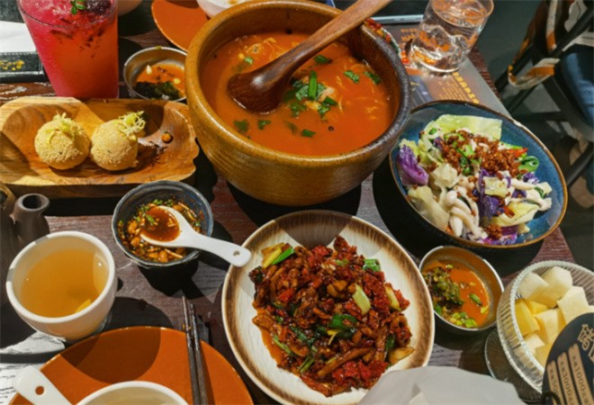 上山下山貴州菜在空間上,肆意生長的綠意和古樸木調(diào)結(jié)合,融萃貴州蠟染古韻與喀斯特奇觀,復(fù)古和摩登交匯,非常適合和親友小聚小酌。在這里既能品味貴州煙火,又能享受高端用餐體驗。一口酸湯喚醒味蕾,一勺米粉熨帖身心,在深圳的繁華里,尋得這般地道又精致的貴州味,實屬難得。