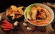 正宗螺螄粉的精華在于湯底,湯底是一碗美味螺螄粉的靈魂,正宗地道的螺螄粉湯底是不易獲得的,熬湯是沒有捷徑的。田螺姑娘螺螄粉的湯底是選用新鮮豬筒骨,石螺加入十幾種香料,配以三十年傳統工藝自有工藝,大火熬制8小時而成,其湯底濃縮了豬骨螺螄的鮮美精華。并且田螺姑娘所用的米粉是經過泡、蒸和4道擠壓的老手藝而成,用純大米制作,口感爽滑有韌性,舊煮不斷。