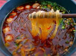 喜味酸辣粉的湯底是用豬骨或牛骨、雞骨再加上提鮮的海產品,經過長時間熬制而成的高湯,富含豐富的鈣質和骨膠原,健康美味又營養。“喜味酸辣粉”采用的紅油是指天椒加植物油和其他香料(如花椒、八角等)用慢火精熬而成,純天然且不含任何化學添加劑。