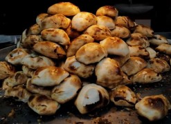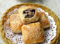 新疆特色烤包子(維語:撒木薩)是維吾爾族喜愛的食品之一。色澤黃亮,入口皮脆餡嫩,味鮮香。主要食材為羊腿肉、洋蔥和面粉。做法為將羊肉加孜然粉、香油和白胡椒腌制十分鐘后和洋蔥攪拌均勻做成餡料。將面粉做成面皮后報上餡料成長方形,刷油烤10分鐘至兩面金黃即可。