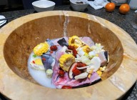 魚福記石鍋魚之所以麻,是因為在魚福記石鍋魚中加入了大量的花椒。重慶人愿吃麻、喜吃麻,是其地理環(huán)境所決定的。重慶位于四川盆地的底部,日照稀少、多霧、多雨、潮濕,多食花椒有利于祛濕氣。重慶人愛吃辣,除了上面講到的氣候原因外,還與重慶人的性格有關(guān)。重慶古稱巴、巴國,巴人驍勇善戰(zhàn),性格剛烈,吃辣不怕辣方顯男兒英雄豪氣。魚福記石鍋魚,辣味十足。