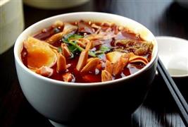 張浦冒菜就是將新鮮的生葷、時蔬菜品集于一簍,置入沸騰的湯汁中燙熟后,裝進配有調料和高湯的碗里即上桌食用的菜肴。冒菜按所配調料的不同,可分為麻辣、香辣、酸辣、泡椒、清香、菌香、三鮮等多種味型。冒菜因其就餐形式簡單,制作過程快捷,菜品上餐迅速,而劃歸為“快餐”之列;又因“即燙即食”之法與火鍋相似,故有“冒菜是一個人的火鍋,火鍋是一群人的冒菜”之說。張浦冒菜,人人點贊的獨特美味!