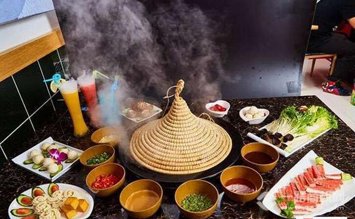 “蒸汽雞”是將原云南汽鍋雞與川菜的結合和改良,汽鍋雞就是將加工后的食材及配套養生藥材按比例放入有汽孔的鍋中,再將汽鍋孔上套汽鍋的方式(像蒸籠一樣摞起老高)置入大鍋中蒸制而成;食財一般以雞、鴨、魚、肉、排骨等葷菜為主,雖然做法簡單,但味道醇正。