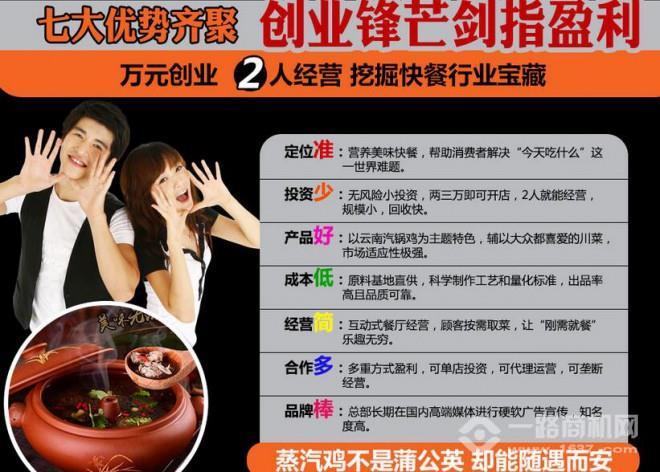 現在準備好了嗎?趕快搶占時尚火爆的“蒸汽雞”特色中式快餐項目的地盤吧!用你的合作特權、超前的營銷意識和我們的專業管理、獨到的專業標準化技術、獨享瘋狂賺錢的樂趣吧!